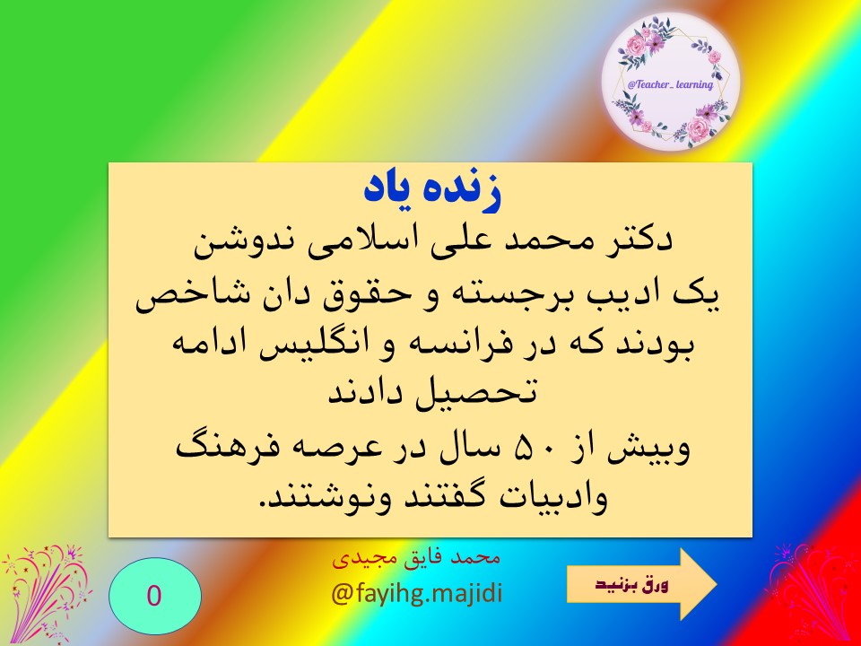 پاورپوینت تجارب شغل معلمی از نگاه زنده یاد محمد علی اسلامی ندوشن در 9 اسلاید
